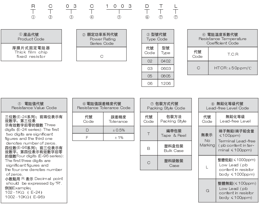 風(fēng)華對高精度貼片電阻的規(guī)格命名與普通厚膜貼片電阻有一定的區(qū)別,下面,我們通過具體型號(hào)作為例子來說明風(fēng)華該系列電阻的規(guī)格和命名規(guī)則: