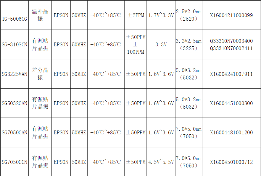 晶振50m是應(yīng)用比較廣泛的一種頻率,其實(shí)常用的50m晶振大部分是50m有源晶振,可以用于銀行金融系統(tǒng),稅控系統(tǒng),遠(yuǎn)程抄表系統(tǒng),加密狗,測(cè)試儀器,超聲頻,網(wǎng)絡(luò)傳輸ADSL,安防(攝像頭,報(bào)警器)等,當(dāng)然熱門的還有比如溫補(bǔ)類型50m晶振TG5006CG 50MHz,南山電子愛普生晶振官方授權(quán)中國地區(qū)核心代理商,實(shí)現(xiàn)了小批量,快速交付的客戶需求。還是老規(guī)矩,我們深信客戶的體驗(yàn)度是首要標(biāo)準(zhǔn),在這里繼續(xù)整理常用愛普生晶振50m的型號(hào)給大家選型參考: