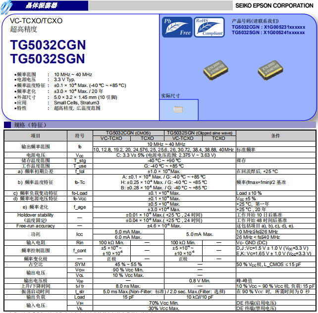 5032溫補晶振TG5032CGN和TG5032SGN來作為代表介紹下: