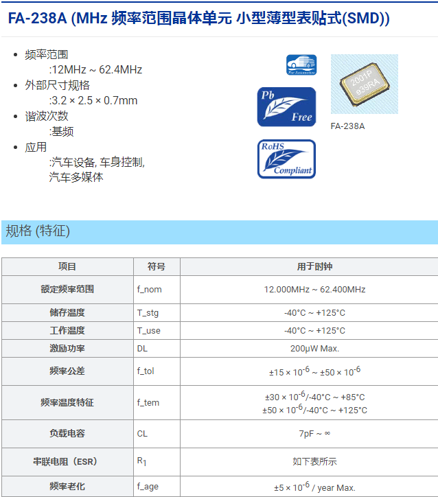 汽車用晶振FA-238A:適用于車載設(shè)備無鑰匙進入系統(tǒng)的耐高溫晶振
