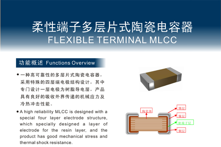 大家好,今天來跟大家聊聊具有柔性防撕裂功能適用于照明產(chǎn)品LED燈的軟端子電容。也可以叫做LED燈電容或者軟燈條電容。這款軟端子電容具有防撕裂的功能,所以業(yè)內(nèi)人也常常稱之為LED燈用柔性電容。LED燈已經(jīng)成為一個高速發(fā)展的節(jié)能燈具品類。風(fēng)華高科為LED燈、汽車電子、高溫環(huán)境、電源線路、TFT-LCD逆變器對貼片電容使用環(huán)境要求較高的領(lǐng)域?qū)iT研發(fā)生產(chǎn)了專用貼片電容等產(chǎn)品,其主要特點是通過軟端子替代了常規(guī)貼片電容的相對剛性的端子電極,從而降低陶瓷貼片電容短路風(fēng)險。那么風(fēng)華的軟端子電容的規(guī)格參數(shù)有哪些特性呢?為何風(fēng)華的軟端子電容可以適用于LED燈等照明產(chǎn)品呢?下面與風(fēng)華高科攜手共進十七年的南山電子就來為您一一解答: