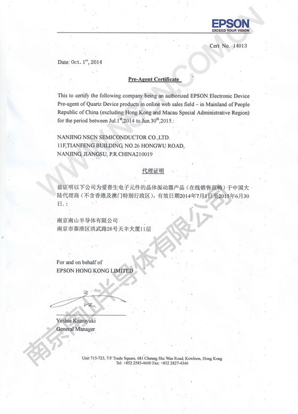 RX8025T代理商:南京南山半導(dǎo)體有限公司(代理證書(shū)編號(hào):14013)