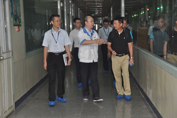 圖為廈門鎢業(yè)董事長黃長庚(圖右)詳細(xì)了解MLCC相關(guān)情況