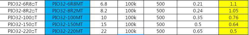 PIO32-100MT 電感10uh 測(cè)試頻率100kHz 直流電阻MAX 0.35Ω 飽和電流0.76A