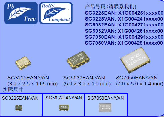 SPXO (32.768kHz) 型號 額定頻率 [kHz] 頻率公差 [x10 -6 ] 頻率溫度特征 標準包裝 SG-3030LC 32.768 5±23 +10 to -120 / -20°C to +70°C 1000 pcs/ Reel "L" SG-3030JF SG-3030JC SG-3040LC SG-3040JC SPXO (MHz) 型號 額定頻率...