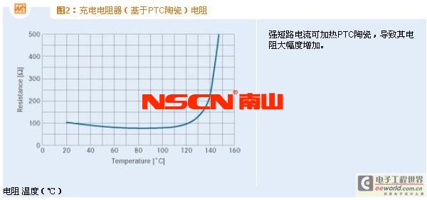 在這兩種情況下,充電電流的時(shí)間曲線(xiàn)幾乎相同。PTC陶瓷與固定電阻在電流特性方面的細(xì)微差別的產(chǎn)生原因是: