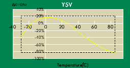 作溫度下,容量會(huì)有比較明顯的變化,我們舉Y5V為例說明: