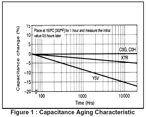 老化是指電容容值隨時(shí)間降低的現(xiàn)象,它在所有以鐵電系材料做介電質(zhì)的材料均有發(fā)生,是一種自然,不可避免的現(xiàn)象。發(fā)生的原因是內(nèi)部晶體結(jié)構(gòu)隨溫度和時(shí)間產(chǎn)生變化導(dǎo)致了容值下降的現(xiàn)象,屬可逆現(xiàn)象。