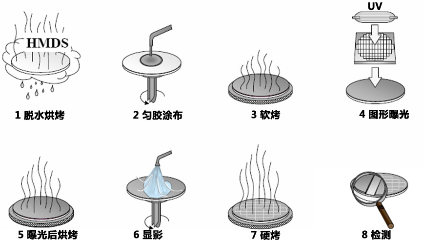 對于正性光刻膠,為了獲得平坦而均勻的光刻膠涂層并且使光刻膠與晶圓之間有良好的粘附性,通常在涂膠之前必須對晶圓進(jìn)行預(yù)處理。預(yù)處理的第一步常常是一次脫水烘烤,在真空或干燥氮?dú)獾臍夥罩?,?50~200℃烘烤。該步的目的是除去晶圓表面吸附的水分,在此溫度下,晶圓表面大概保留下一個(gè)單分子層的水。