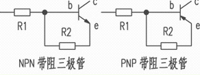 帶阻三極管常用在錄像機、彩電中。它把三極管和工作時所需要的電阻封裝在一起。注意其內(nèi)阻對讀數(shù)的影響。特別要指出:這種三極管不能作為普通三極管使用,而只能是“專管專用”、 這是因為不同的管子里面配置電阻的方法、數(shù)量及阻值是不同的。所以帶阻三極管損壞后,也必須用同型號管代換而不能拿普通的三極管簡單代換。不得已時,也要用性能相近的三極管配上合適的電阻后替換。